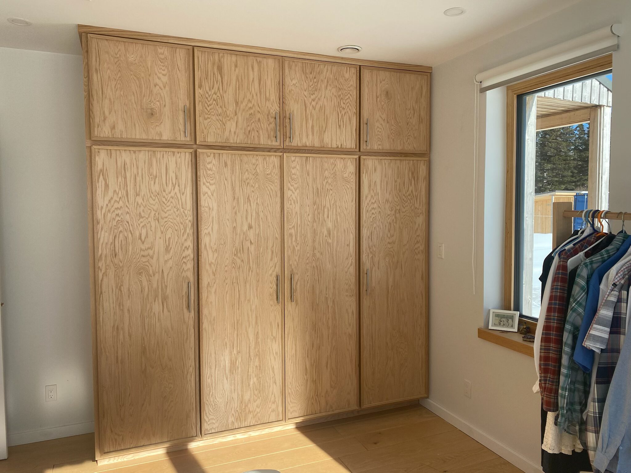 This custom Free Standing Oak Closet was designed and built to meet the client’s specific requirements. Constructed from solid oak, it offers both strength and durability while maintaining a clean, modern aesthetic. The spacious interior provides organized storage for clothing and personal items, while the precise craftsmanship ensures a polished, high-quality finish. This project demonstrates our ability to combine functionality with elegant design for lasting results.